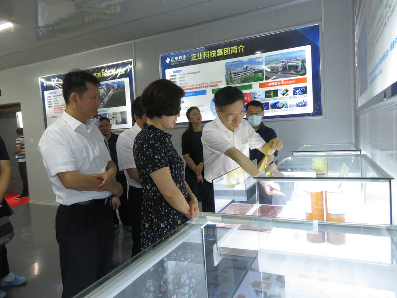 在調研過程中,吳副省長一行參觀了南昌正業生產車間,正業科技董事長徐地華全程陪同并介紹南昌正業的發展歷程、發展規劃、 產品及生產工藝,吳副省長仔細詢問電子材料的研發、應用和市場開發等具體情況。