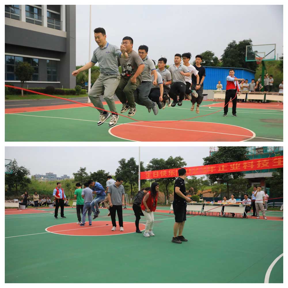 生日活動共有3個游戲項目:跳繩比賽、二人三足比賽、蒙眼吃西瓜,各隊伍分組角逐,奮勇爭先,積極參與到每一個游戲中。場下的隊友鼓舞吶喊,加油助威,現(xiàn)場氣氛活躍,展示了正業(yè)員工團(tuán)結(jié)協(xié)作,友好和諧的團(tuán)隊精神,整個游戲環(huán)節(jié)趣味橫生,氣氛熱烈,呈現(xiàn)了一場充滿歡聲笑語的歡樂盛宴。