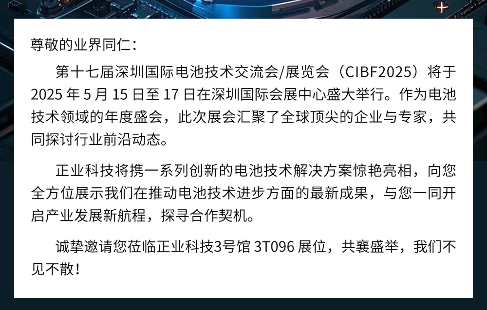 展會(huì)邀請(qǐng) | 正業(yè)科技邀您共赴深圳CIBF2025電池展,共探行業(yè)新未來(lái)